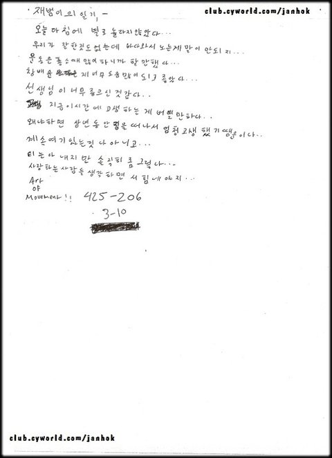 재범이가 투피엠으로 데뷔하기전 나왔던 서바이벌프로그램에서 5일동안 해병대 훈련을 받으면서 썼던일기.
