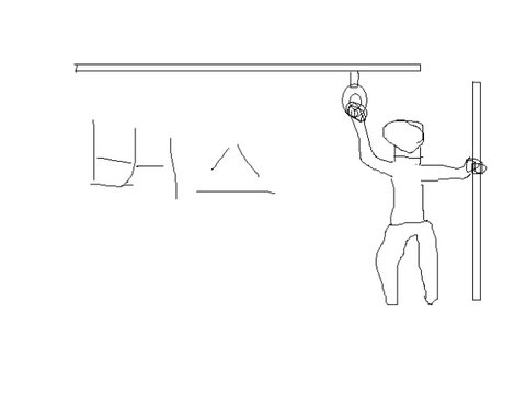 그래서 오른손엔 옆에있는 봉을 잡고 왼손으로 위에있는 손잡이를 잡았음