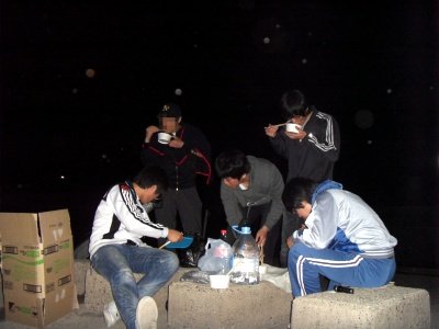 배가 고파 한명이 고기굽기로 하고 또 다시 던지고 당기고 시작했함-