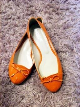 산뜻한 봄 컬러인 오렌지 색 플랫슈즈에요