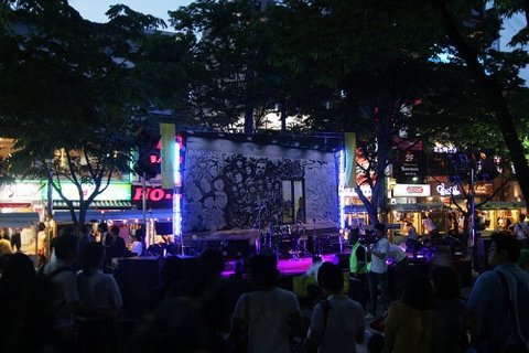 공연을 펼치고 그로인해 꼭 매장 홍보만이 아니라 홍대앞을 지나다니는
