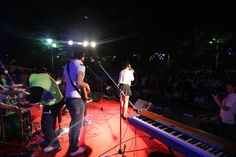홍대 놀이터에서 특설무대를 세우고 대대적인 공연이 있었습니다..