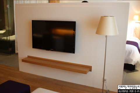 그렇다고 탁 트여있지 않고, 벽걸이 TV 를 이용하여 시선만 가리는 형식으로 나눠져 있습니다.