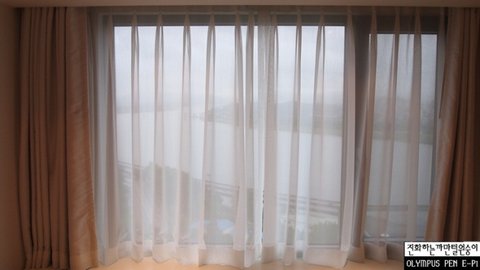 비가 오는 우중충한 날씨라 보일듯 말듯 커튼을 닫고 전망만 살짝 보이도록 사진을 찍었습니다.