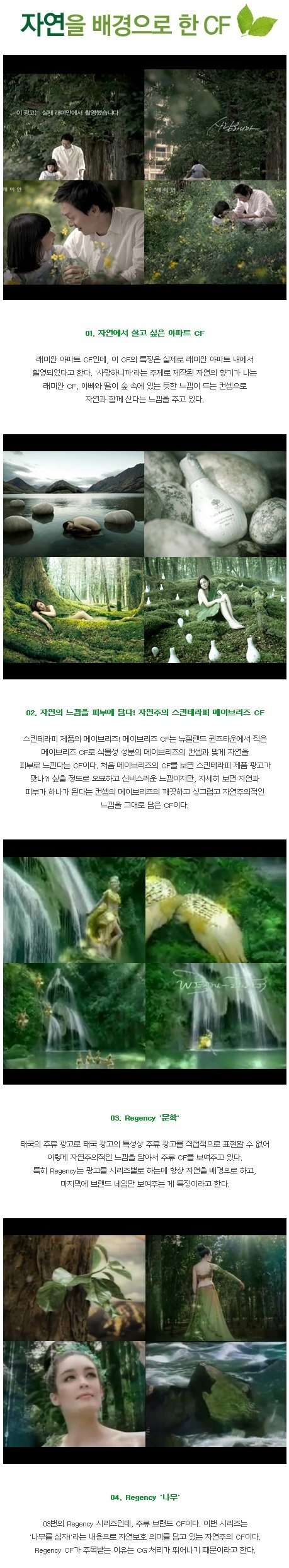 자연을 배경으로 한 자연주의 CF들이 눈에 들어오네요^^