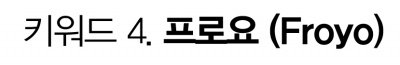 다들 아시겠지만 '프로요'는 안드로이드 OS의 2.2버전의 별칭입니다. 1.5버전이 '컵케익(Cupcake)', 2.1버전이 '이클레어(Eclair)'였듯 안드로이드 OS의 버전별 이름은 디저트에서 따온 것이 꽤 귀엽게 느껴집니다. '프로요' 역시 디저트인 얼린 요구르트를 가리키는 말입니다. ('frozen yogurt' -> 'froyo'로 축약)