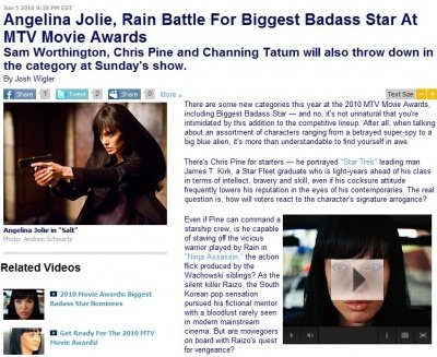 패리스 힐튼도 축하한 비의 MTV 무비어워드 '최고의 액션스타상' 수상~!