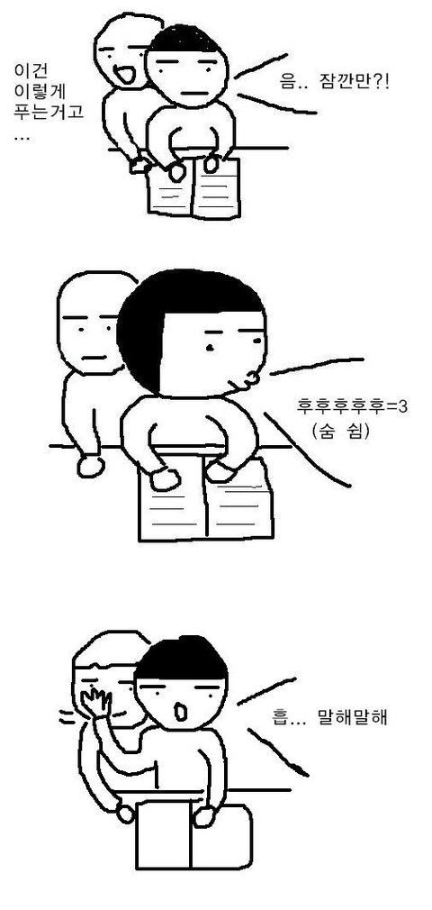 "잠깐만!" 하고 고개돌려서 숨쉬고