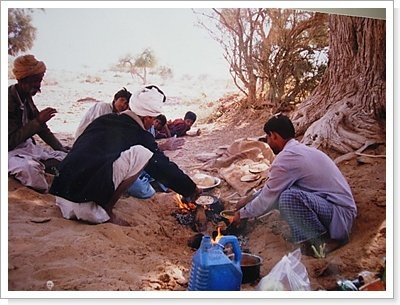 낙타를 타고 사막을 횡단하는 중이었어요.