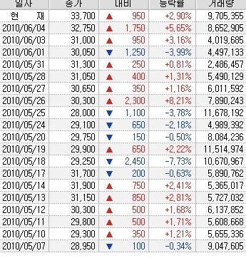 제가투자한기간동안의 어떤 주식 가격표입니다.