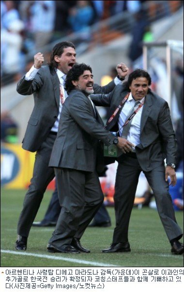 마라도나 감독은 "오늘 경기에서 한국은 단 한번도 경기의 흐름을 통제하지 못했다"며 "한국이 우리보다 나으려면 우리가 실수하기만을 기다리는 것 뿐이었다"고 웃어보였다.