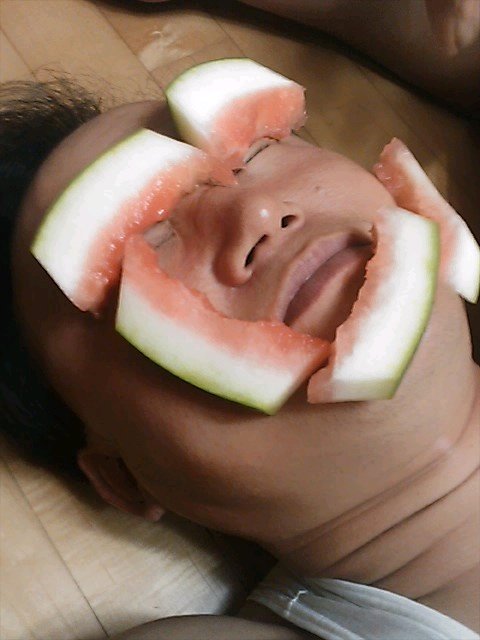 아빠曰 "얼굴좀 따가운데 이런거 수박이나 참외로 마사지좀 해봐"