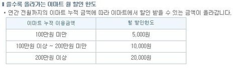 게다가 이마트는 연간 금액이 누적되어서 이렇게 할인 받을 수 있는 금액이 더 늘어난다는 거!