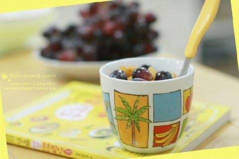 ① 아쥬 간단한 방법! 깨끗히 씻은 포도를 요플레에 섞어먹기 - 말아드시면 안돼요(ㅠㅠ)