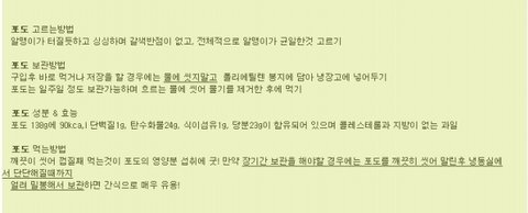 아! 그리고 포도다이어트를 하기전 제일먼저 장 속을 완전히 비워주는 게 좋대요~ 포도의 성분 흡수를 돕기 위해서죠.
