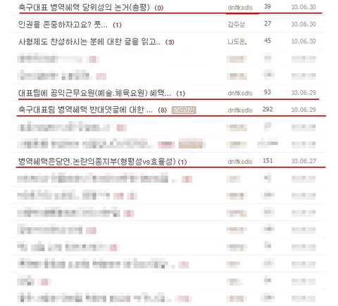 - 허정무호 병역 면제? 네티즌들 “국방 의무 매도” ...반대 '대세'