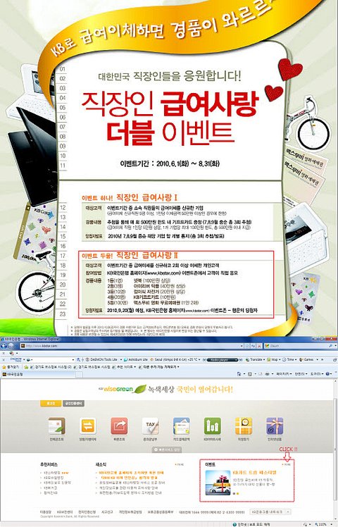 또한 현재 국민은행에서 신규 급여이체 고객을 상대로 이벤트중이니 관심을 가지면 1석 2조의 효과를 가질수 있다.