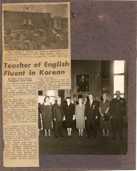 이야기했듯이 그의 어머니는 풍문여고의 선생님이셨습니다. 나의 어머니께서는 그곳에서 영어를 가르치셨고 그래서 그와 저는 1959년에 만나게 되었습니다. 그 이후로 우리는 몇년동안 매 주말을 함께 보냈고 매우 친한 친구가 되었습니다. 그 당시 신문기사를 하나 첨부합니다. 기사 밑에 있는 사진은 그 당시 촬영되었으며 제 어머니가 이승만 대통령 오른쪽에 서계십니다. 제 부모님은 두분 다 한국어를 잘 하셨습니다.