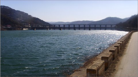 다음으로 저희가 가본 곳은 의암댐이었습니다. 의암호 주위로 둘러싼 산도 경관이지만