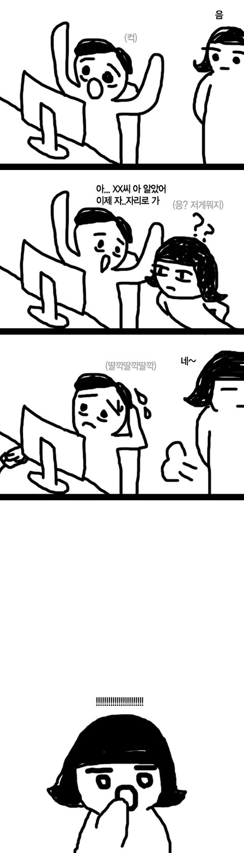 "XX씨... 아. 이거... 해.. 해놔야지.. 그리고!!! 응??? 말이야...
