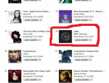 #Taeyang #Solar cracks the Top 5 of iTunes