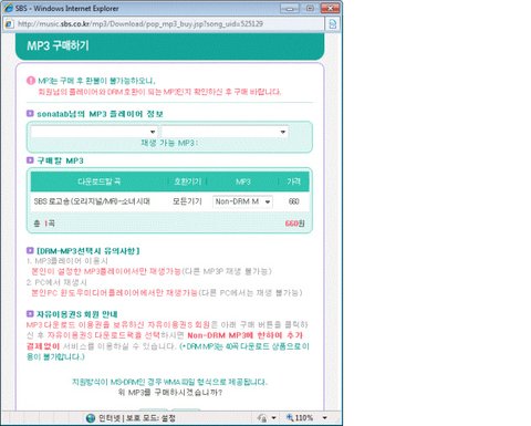 헉! 그런데 자사의 로고송을 일반MP3와 같이 660원에(VAT포함) 팔고 있더군요!