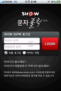 SHOW의 아이디와 비번넣으면 바로 로그인 가능하구요 -