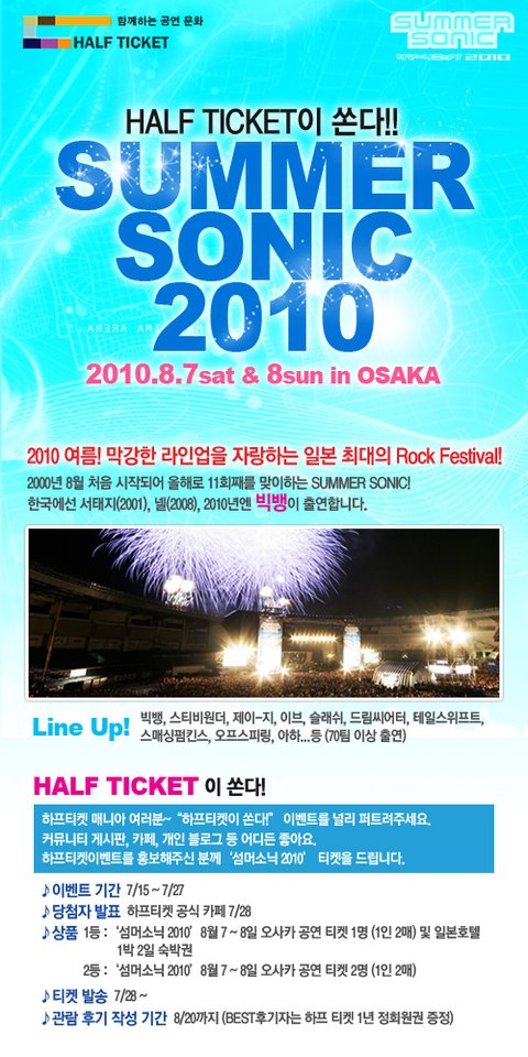 FT아일랜드 볼수있는 하프티켓에서 진행하는 썸머소닉 락페스티벌 이벤트