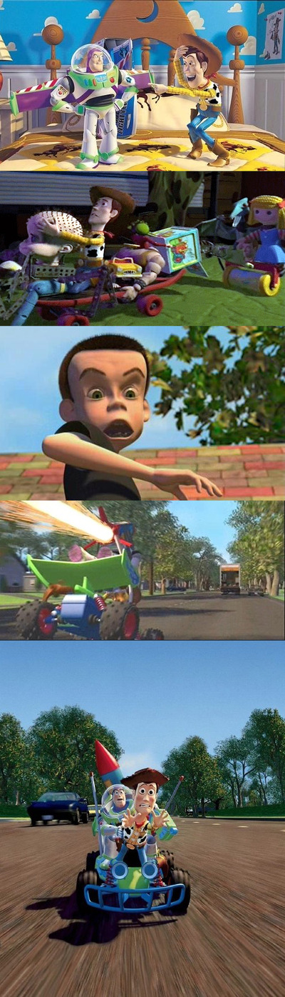 어때요? 마지막에 우디와 버즈의 미니카를 타고 달리는 장면!