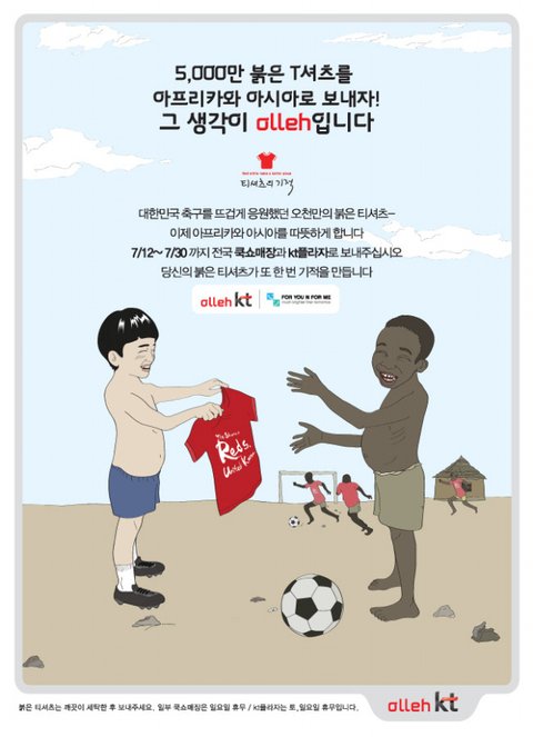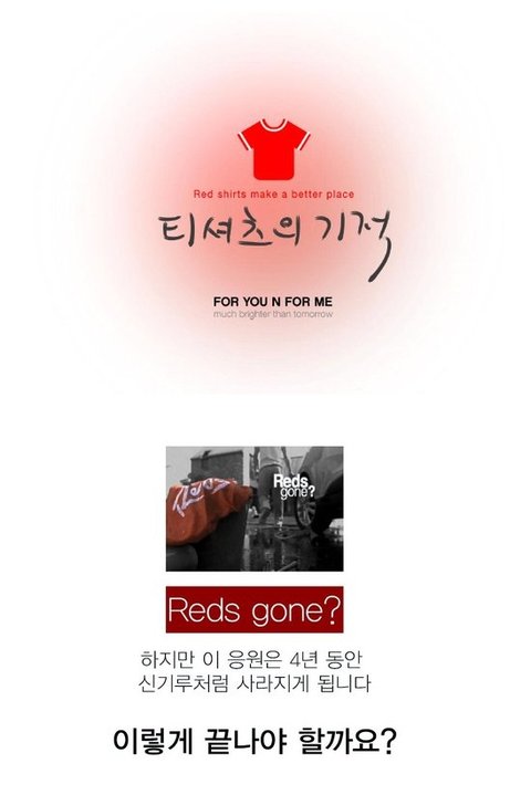 지금 바로 근처 아름다운 가게나 KT 프라자에 가셔서 붉은 색 응원 티셔츠를 기부하기!