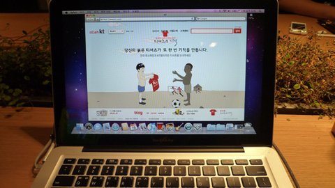 맥북에서 인터넷을 실행시켜보니 티셔츠의 기적 화면이 맨 처음으로 뜨네요!
