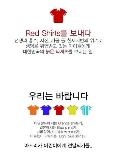 이 붉은 티셔츠가 모아져 제 3세계 어린이들의 삶을 도웁니다.