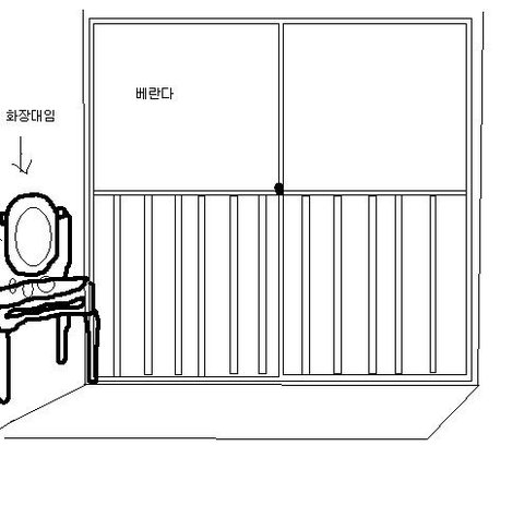 베란다 화장대쪽에 무언의 파란빛깔이 보이는거임