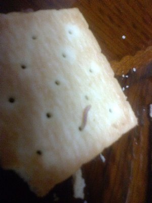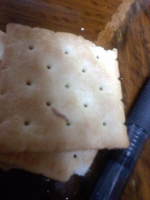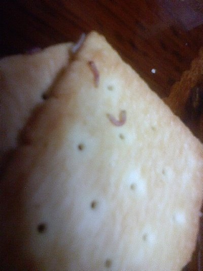 그래서 뜯은 에이스 과자를 꺼내어 펼쳐보니 과자 한층 마다 저런 애벌레들이 두세마리가 앞뒤로 붙어서 꿈틀거리고 있었습니다.