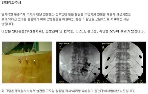 원래는 고도일신경외과였는데 척추질환을 비수술로 치료를 잘한다고 입소문이 퍼져
