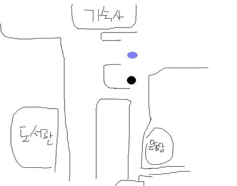 보라색 : 글쓴이 검은색 : 그 물체 위에부터 왼쪽 오른쪽: 기숙사 도서관 운동장