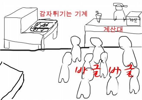 그것을 튀기 기계가 계산대 바로 옆에 있었는데 위에서