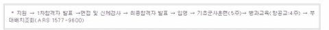 항공분야인만큼 기초 군사 훈련 후, 병과 교육에 항공 교육이 4주동안 진행된다는 점은 항공 분야의 전공자 혹은 새롭게 시작한 이들에게도 도움이 되는 부분이 아닐까 싶답니다.
