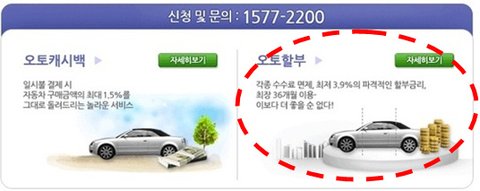 일시불 결제 시 자동차 구매금액의 최대 1.5%를 그대로 돌려주는 오토캐시백,