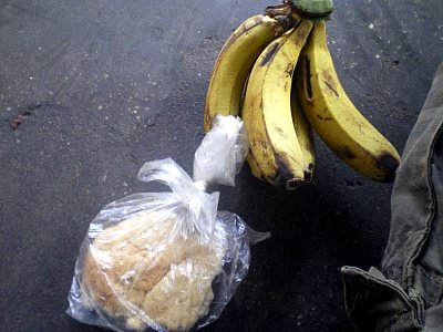 바나나와 싸구려 과자를 샀습니다.