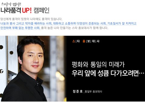 안녕하세요? 통일부 홍보대사를 맡고 있는 정준호입니다.