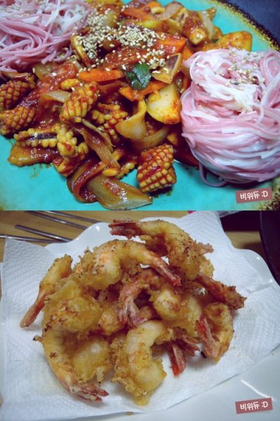 오징어소면과 새우튀김