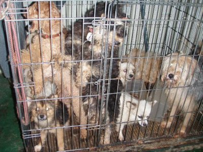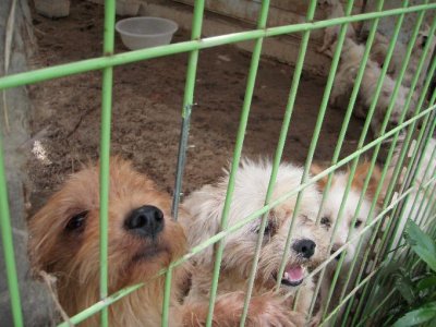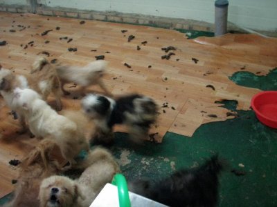 사진에서 볼수 있듯....케이지안에는 여러마리의 강아지들이 한데 섞여 있습니다.