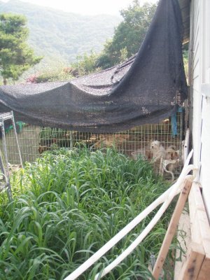 250마리 수용 시설에 500여마리가 빼곡히 들어앉아 있는 열악한 시설.