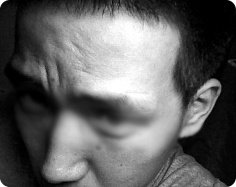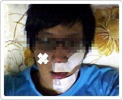 정면으로 고꾸라져서 시멘트 바닥에 얼굴을 부딪혔습니다.