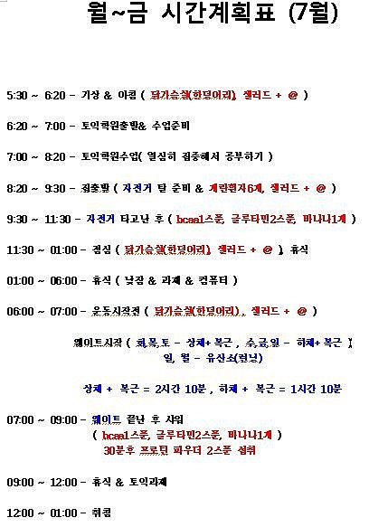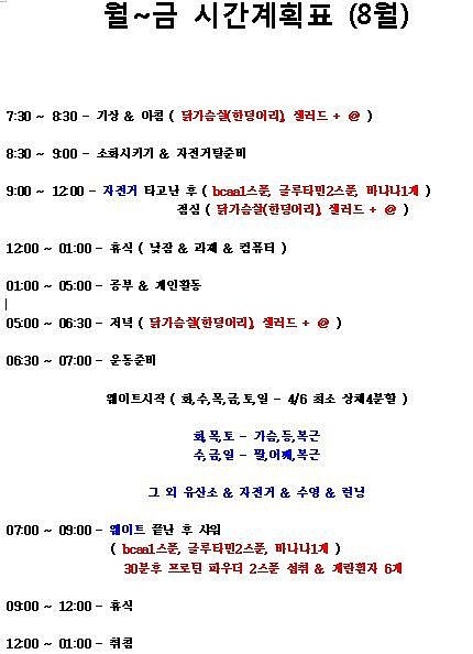8주간의 도전을 시작하기전 2달간의 시간계획표와 참고할