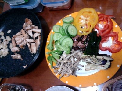 (닭가슴살,버섯,오이,파프리카,아몬드,가지,브로콜리,마늘 등)