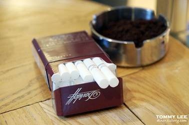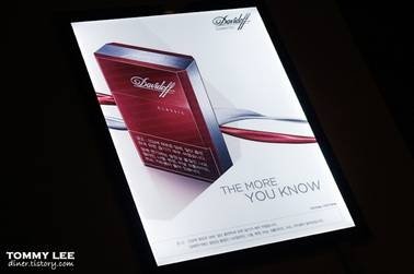 흡연실로 들어서니 다비도프 클래식이 한쪽 벽에 장식되어 있습니다..