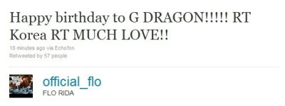 플로라이다가 트위터에 직접 지드래곤 생일 축하한다는 메세지를 남겼네요!