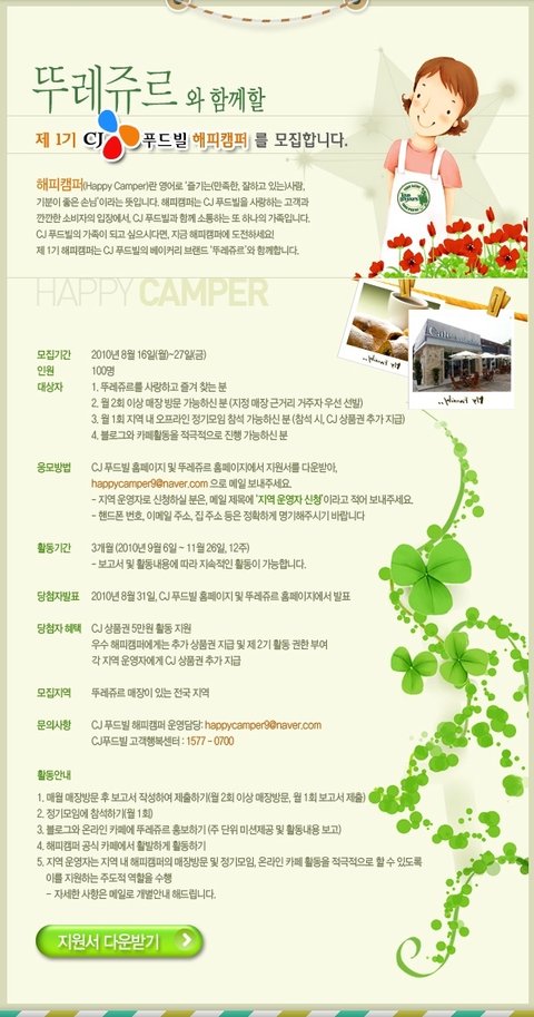 CJ푸드빌에서 뚜레쥬르 모니터 체험단을 모집하고 있습니다.